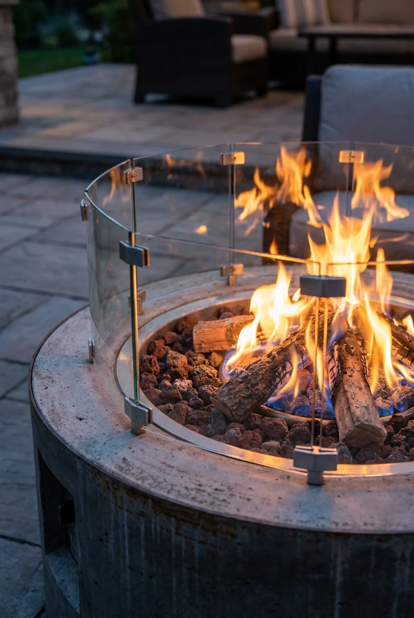 - Spark control: use a screen for wood; choose tempered glass wind guards for gas.