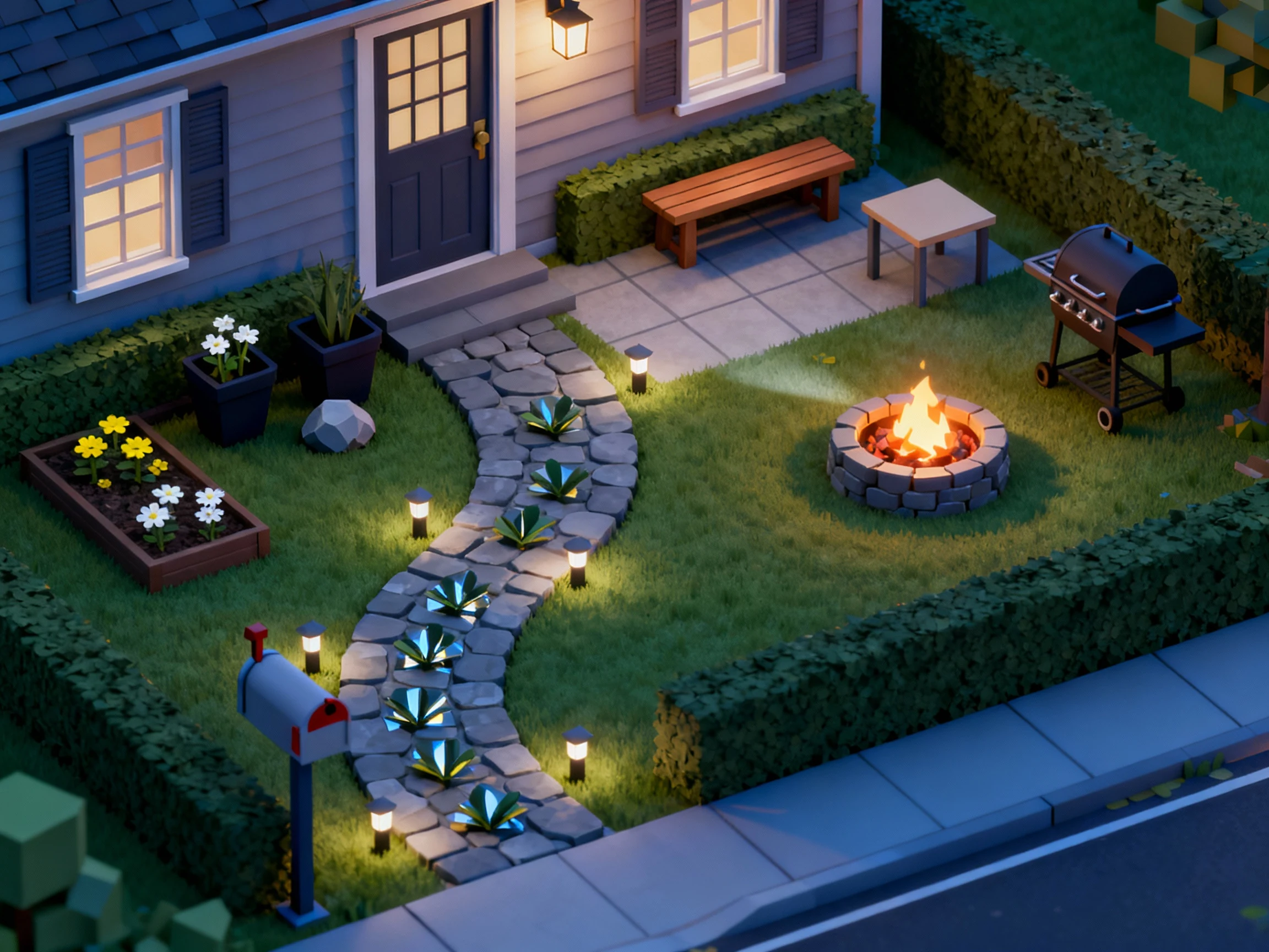 You can transform the front in under 30 minutes with a simple path, a mailbox garden, and a few lights. No fancy placements, no overlapping, no crying over misaligned stones. Aim for symmetry near the door and a soft curve by the street for personality.