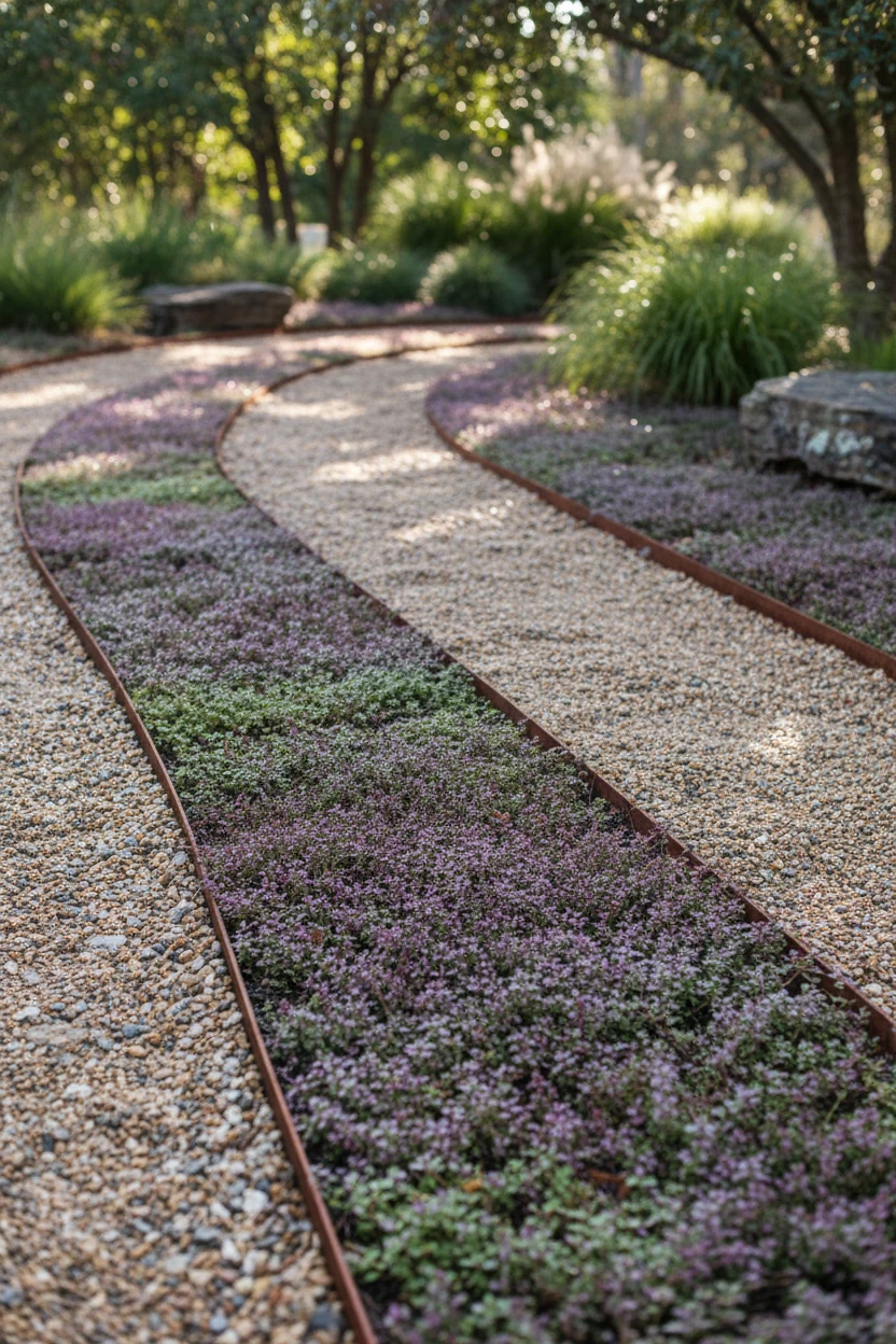 - Stepping stones + gravel = budget-friendly and drainage-friendly.