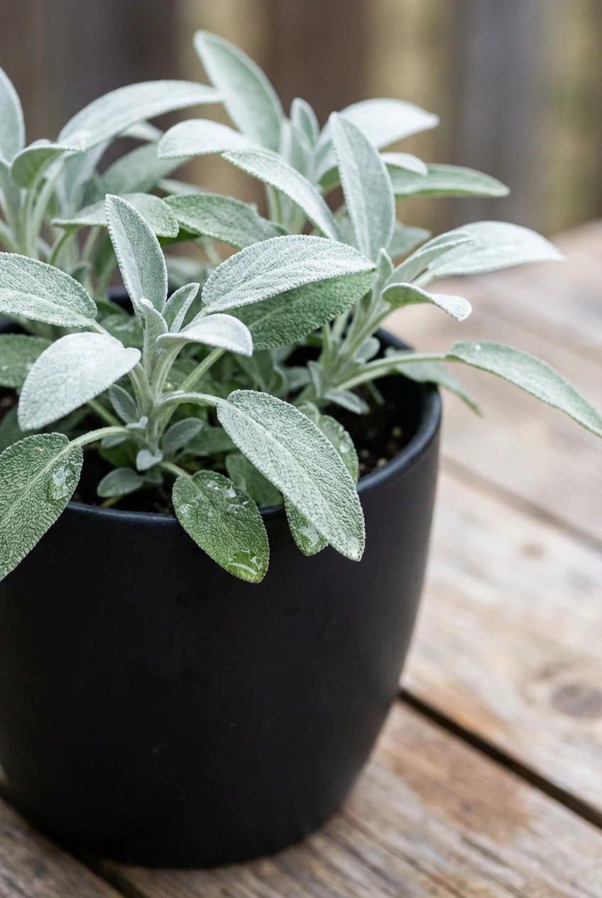 • Sage (Salvia officinalis) — Soft gray leaves, earthy scent, and hardy in zones 5–8. Plant in full sun and sandy soil. Use for wisdom and cleansing (go with culinary sage instead of threatened white sage), and fry the leaves for crispy, magical snacks.