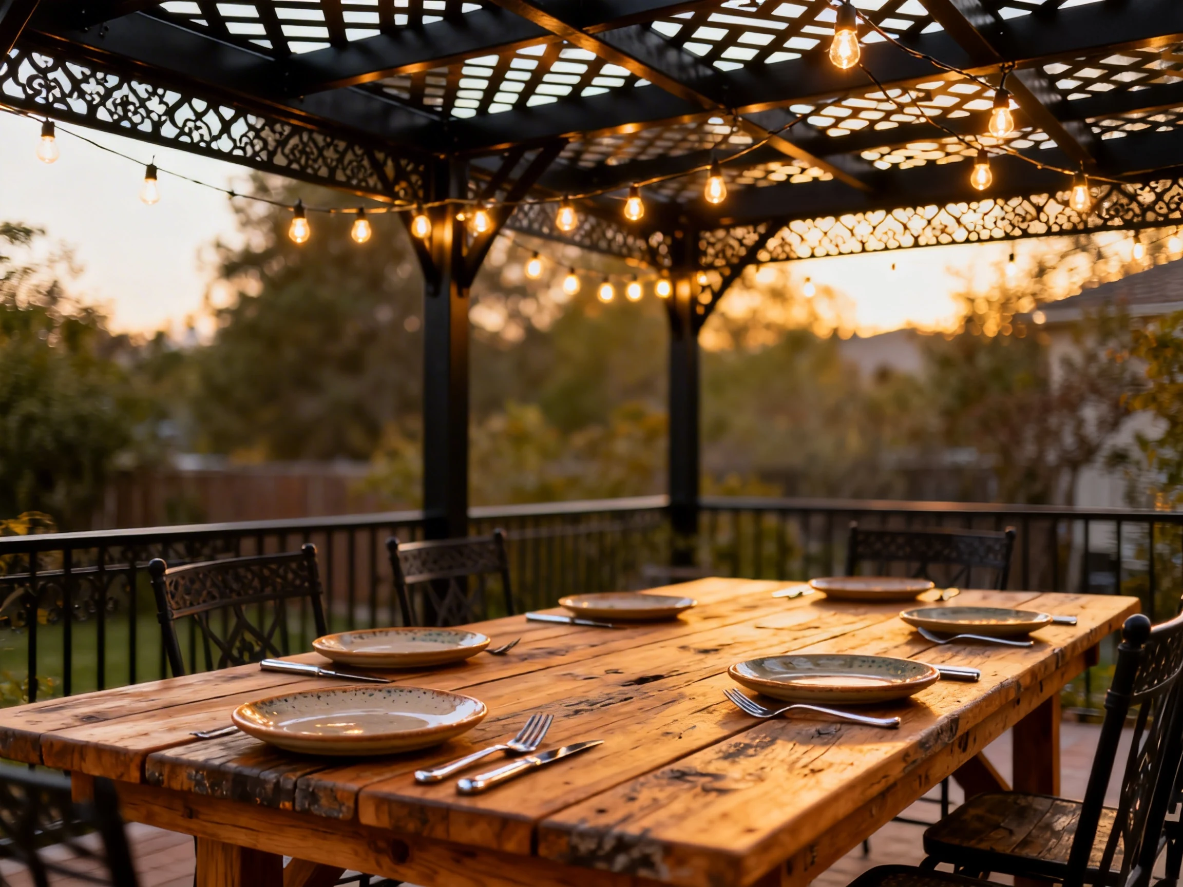 Choose pieces with clean silhouettes and weather friendly finishes. Metal frames, teak, woven outdoor fabrics, and neutral cushions usually work well. Oversized corner sofas can look great, but only if your garden has room. If not, they just eat the whole patio and leave you with a very expensive obstacle.