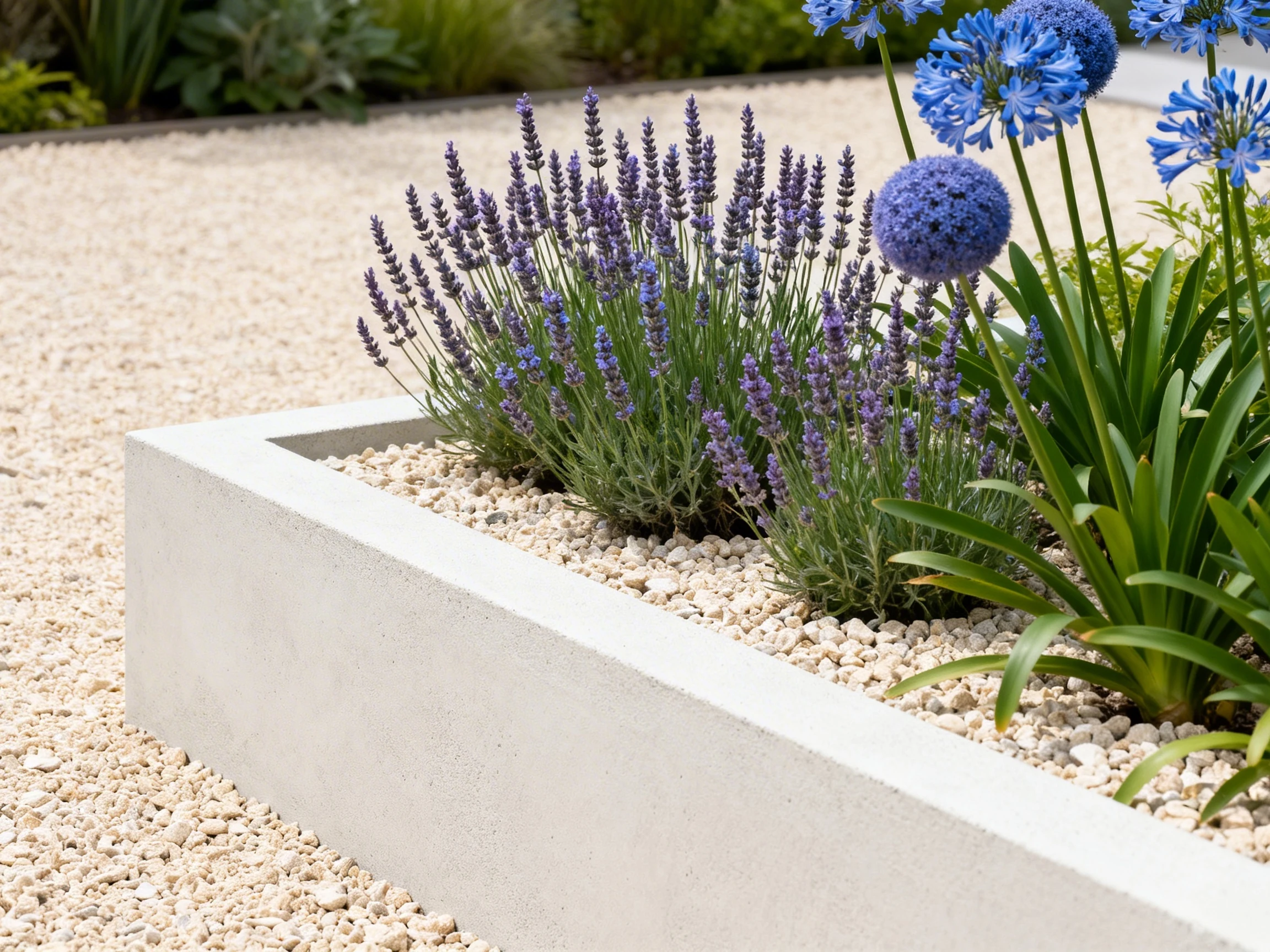Architectural plants work brilliantly in modern spaces. Think phormiums, olive trees, agapanthus, alliums, lavender, and box alternatives like ilex or pittosporum. Ornamental grasses such as stipa, miscanthus, and pennisetum add softness and movement without ruining the clean vibe.