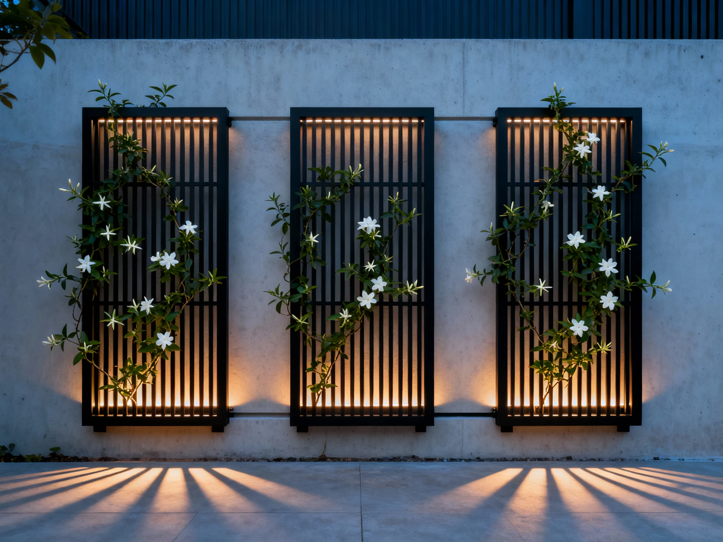 - Run spacers (1–2 inches) between trellis and wall for airflow and shadow play.