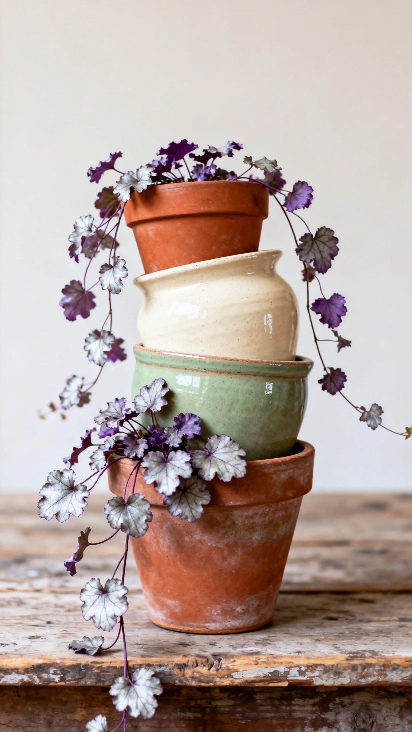 - Pick a consistent color palette for pots.