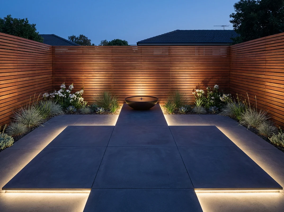One focal point anchors the design and gives the garden a destination. Choose a compact fire bowl, a sculptural container, or a small water feature. Keep it simple. Place the focal point where paths terminate so it earns attention naturally.